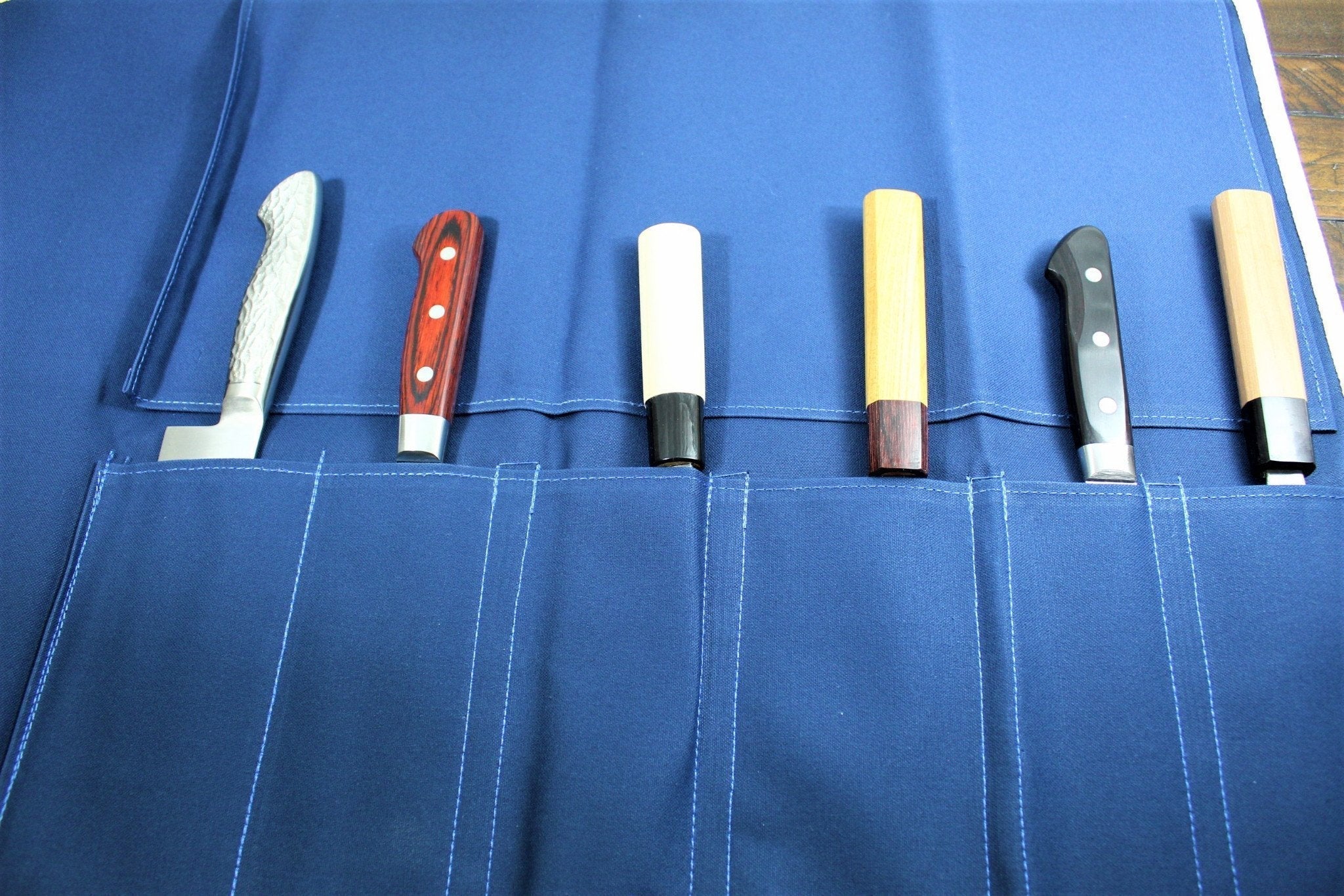 Sakai Takayuki Japanese Chef Knife Canvas Roll Carry Bag for 6 Knives - Navy