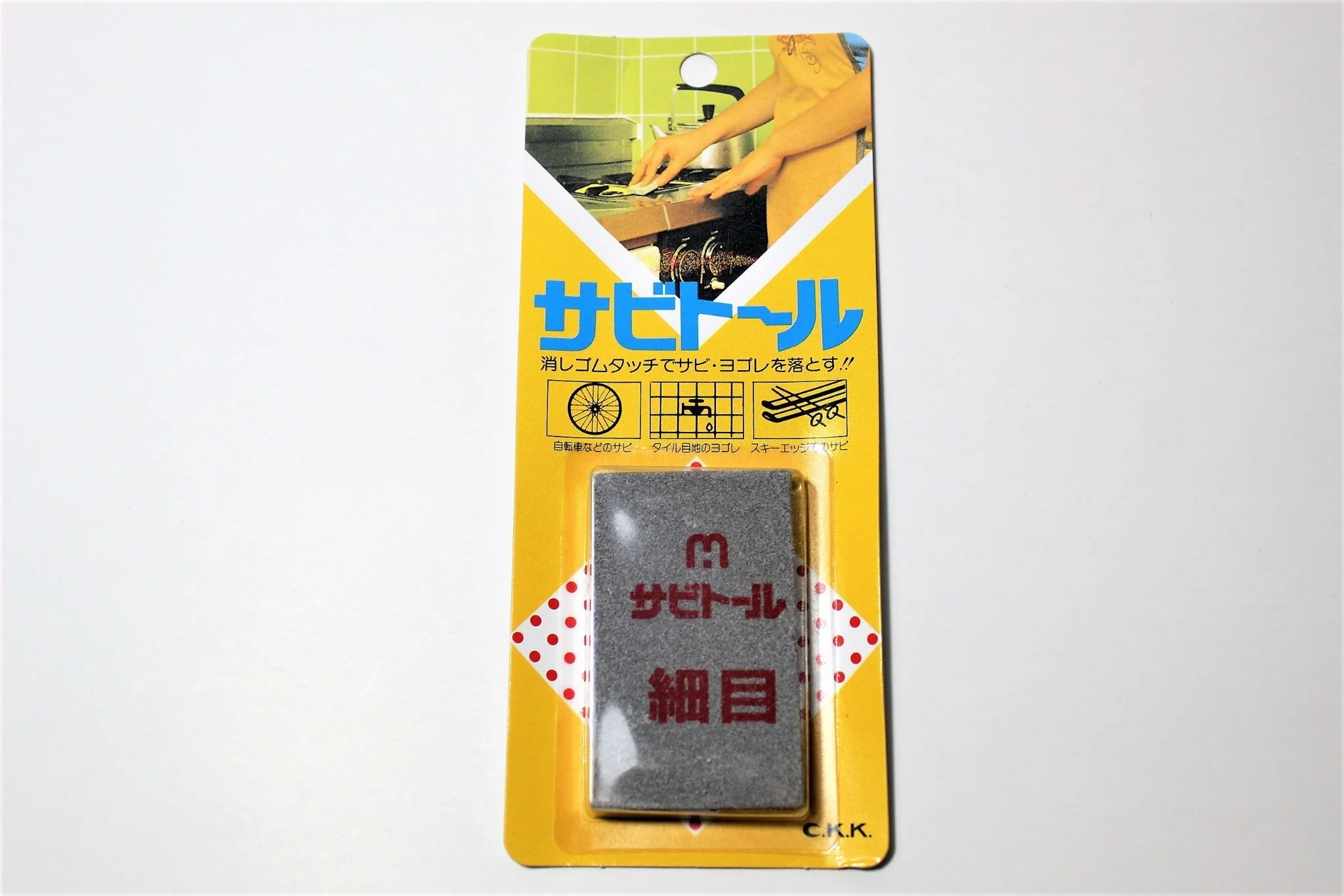 This can be used on things such as kitchen knives to remove minor rust stains or corrosion. You can use it like an eraser.