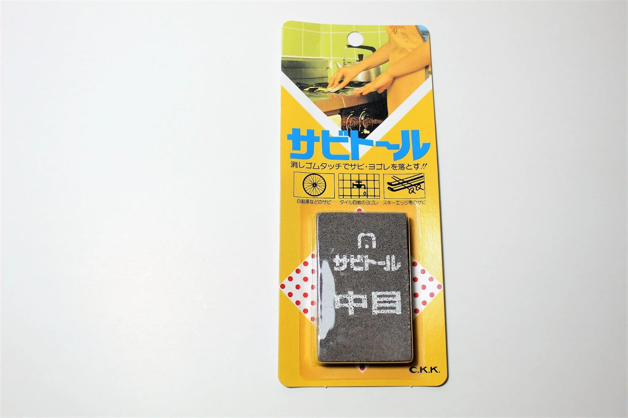 This can be used on things such as kitchen knives to remove minor rust stains or corrosion. You can use it like an eraser.