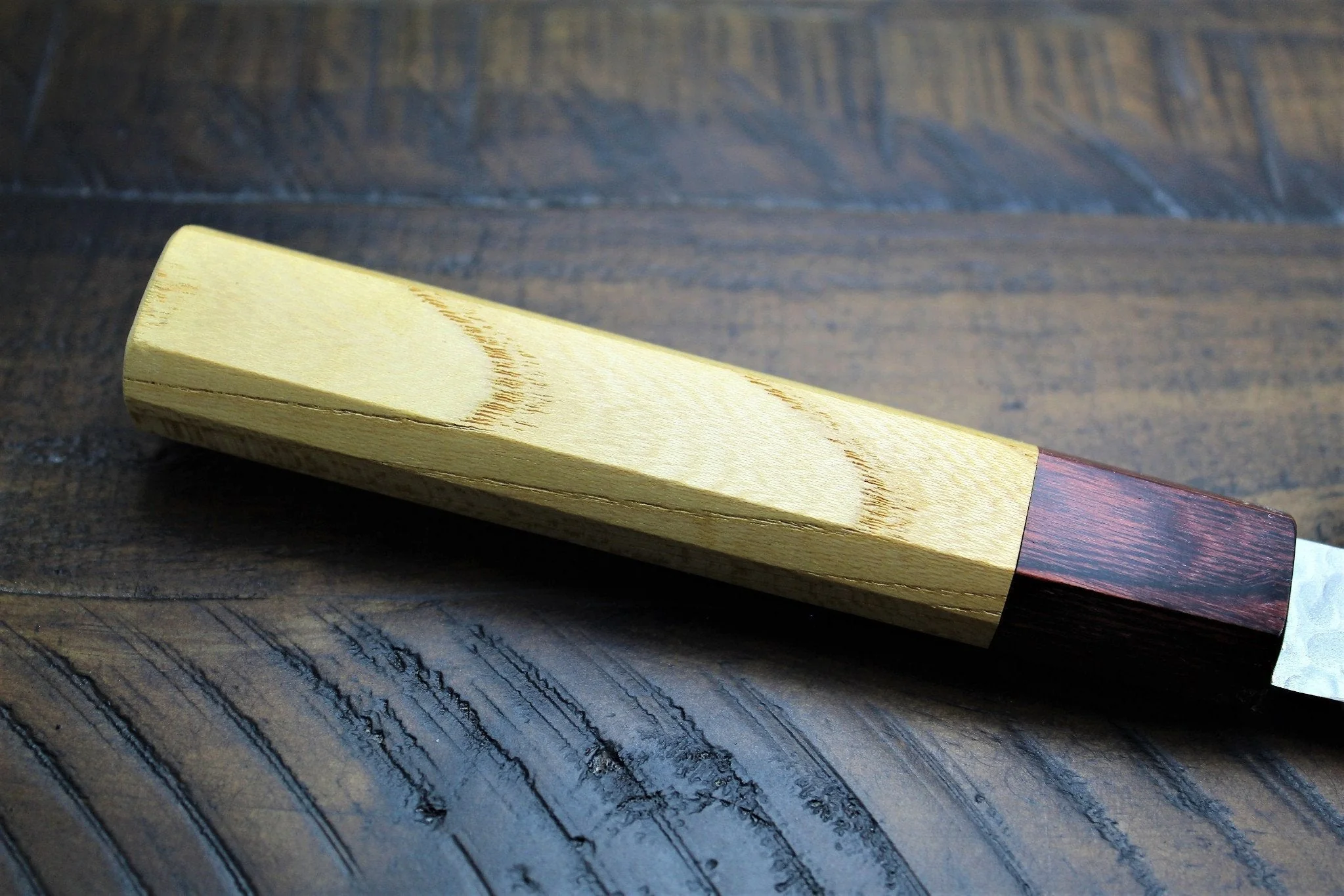 Damascus Nakiri knives are designed to be thin knives that slice, cut & chop easily through vegetables to maintain the integrity of each component and freshness.