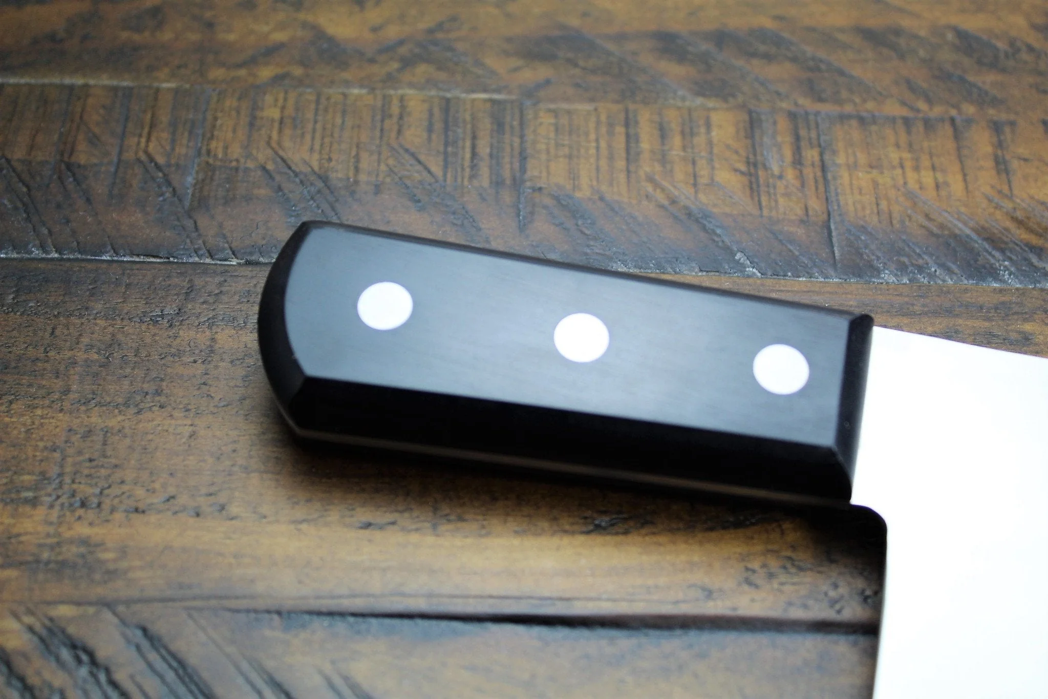 The Cleaver knife has heavier blade allows for easy chopping of more dense material. The high-quality Japanese stainless steel called "INOX" which made from AUS-8A Molybdenum stainless steel. This stainless steel is a very popular in Japan with excellent sharpness and durability, also resistance to rust. By combining the blade and handle with stainless steel, it is a kitchen knife that is superior in hygiene and prevents the propagation of bacteria that can cause food poisoning.
