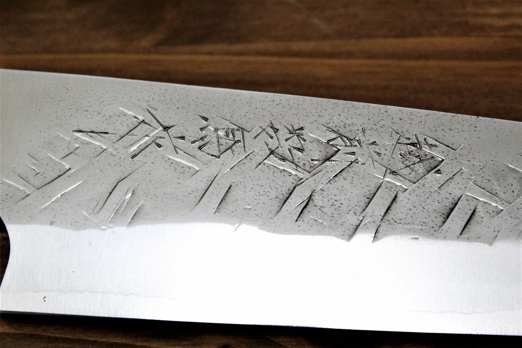 The Santoku by Sawakazuma is a great length for those looking for a multipurpose kitchen knife that is a little more nimble. That coupled with the SRS13 high speed powdered stainless steel will make this your go-to knife for all things!