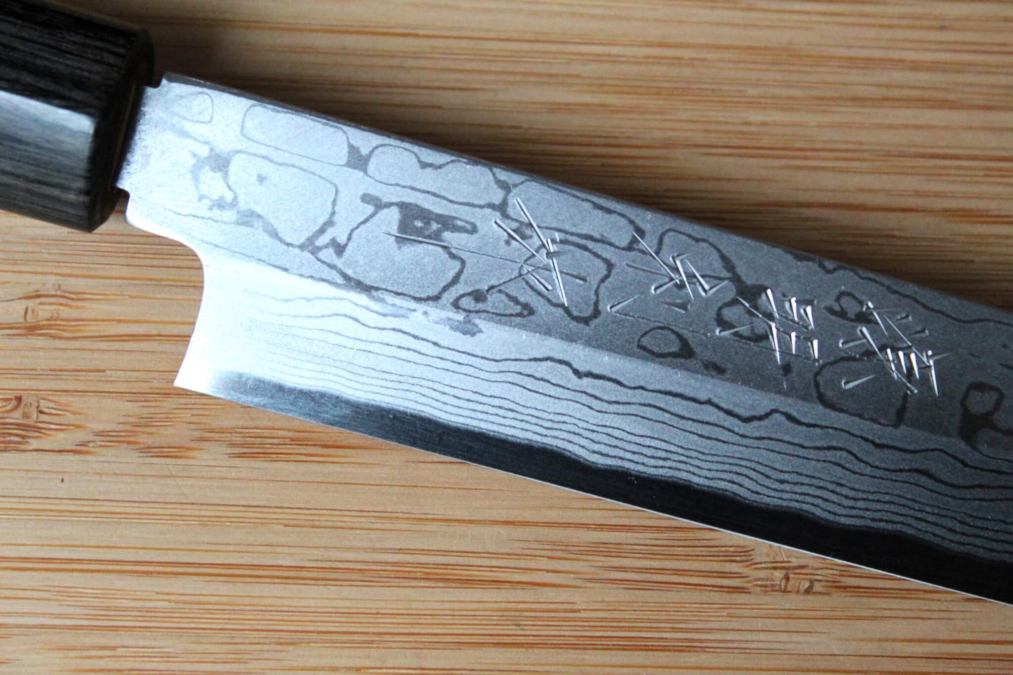 This knife maker is Sawakazuma from Echizen city, Fukui which is located along the Sea of Japan. Echizen knives have a long history, dating back 700 years. While Japanese knives as a whole are typically designed with thinner blades than their European counterparts, the knives coming from Echizen take that a step further and are even narrower.